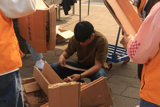 数字媒体学院小灯塔志愿者们在学子广场宣传以及讲解,对同学们捐赠的物品进行检查和登记,通过公益机构定向捐赠到指定受助群体,最后大家所捐赠的物品会根据旧物不同品类、不同复用程度(残旧程度),送往不同处理厂商进行二次处理,使大家的物品实现低碳化、高效率、精准、价值最大化的公益参与。