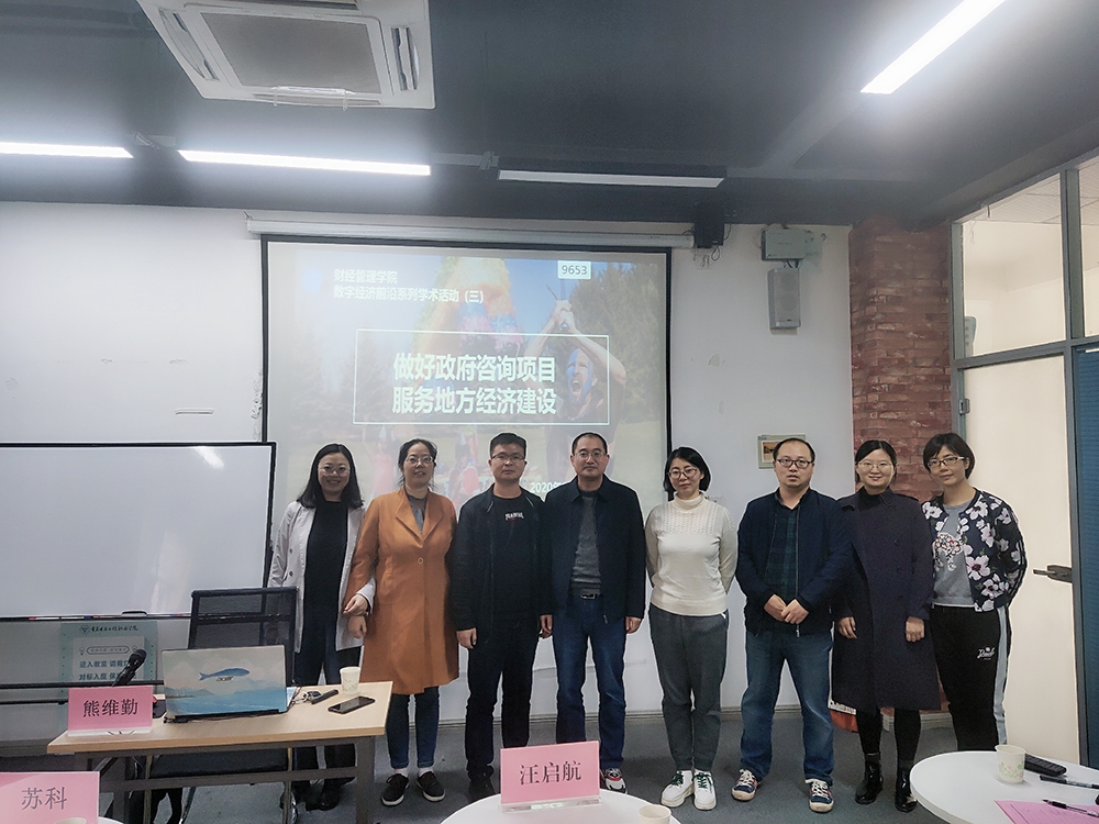 为提升教师科研项目申报能力,搭建高水平学术交流平台,2020年10月29日下午,财经管理学院“数字经济前沿”系列学术活动2020年第3期学术沙龙在我校10-401会议室成功举办。本期学术沙龙由科研与社会服务处主办、财经管理学院承办,科研与社会服务处苏科副处长、财经管理学院汪启航副院长及十余名科研骨干、青年博士参与。