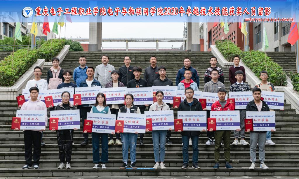 图为重庆电子工程职业学院电子与物联网学院2020年卓越技术技能获奖人员留影