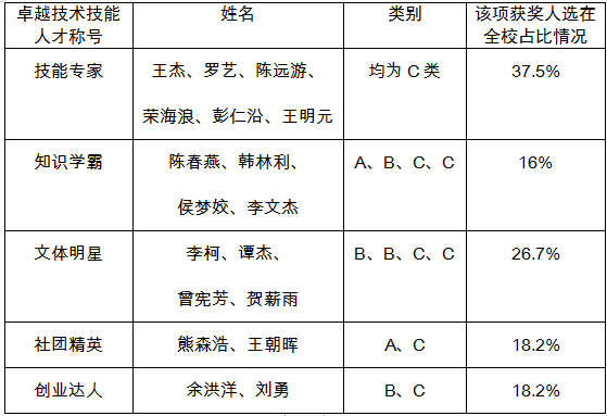 图为电子与物联网学生荣获“卓越技术技能人才”情况
