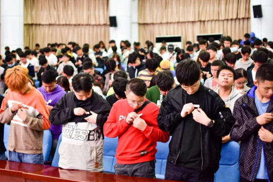典礼上,全体新生一同佩戴上了校徽。一枚小小的校徽承载着莘莘学子对未来的希冀,代表着智慧健康学院的新生们正式成为重电的一份子,它将守护着每一位智健学子步入新的人生旅程。