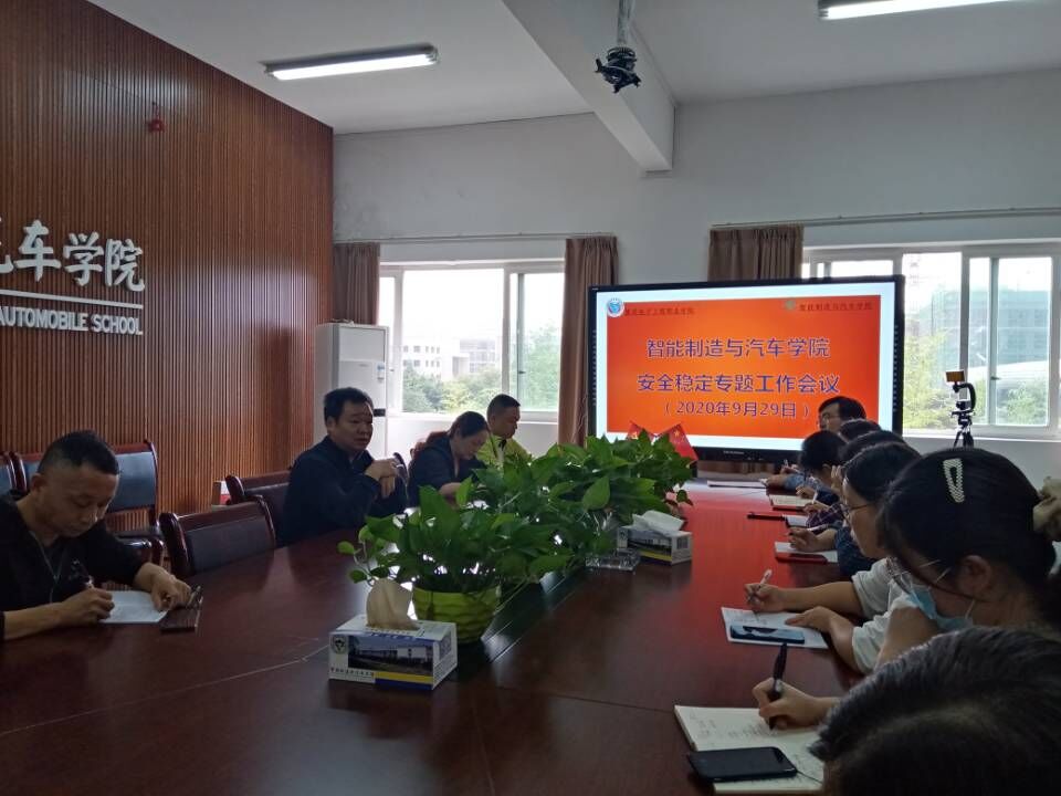 根据市教委《关于切实做好2020年中秋、国庆期间学校安全稳定工作的通知》及学校有关节假日安全稳定工作的指示精神,为确保学校安全稳定,保证师生员工能够安全祥和地度过中秋、国庆期间,2020年9月29日下午,我校智能制造与汽车学院在B301会议室召开了安全稳定工作部署专题会。会议由张进春院长主持,实训中心负责人,汽车工程系、自动化系、智能制造系系部书记以及相关辅导员参加了本次会议。