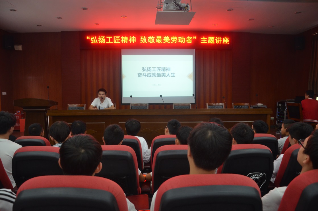 9月24日下午,我校汽修1804班学生陈涛受邀参加璧山职教中心在该学校学术报告厅为2020级电梯班和2019级电子高考班开展的一堂“弘扬工匠精神,致敬最美劳动者”的主题讲座。