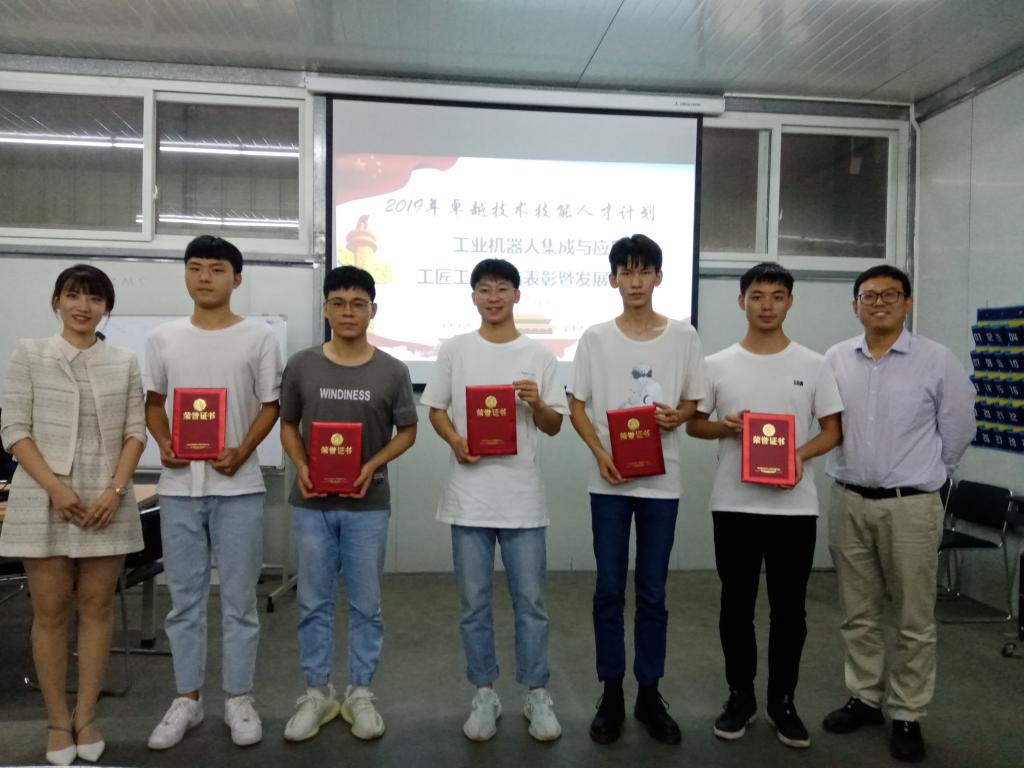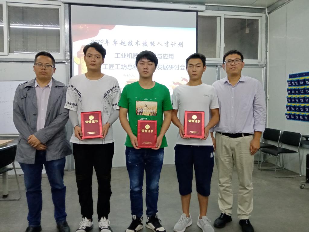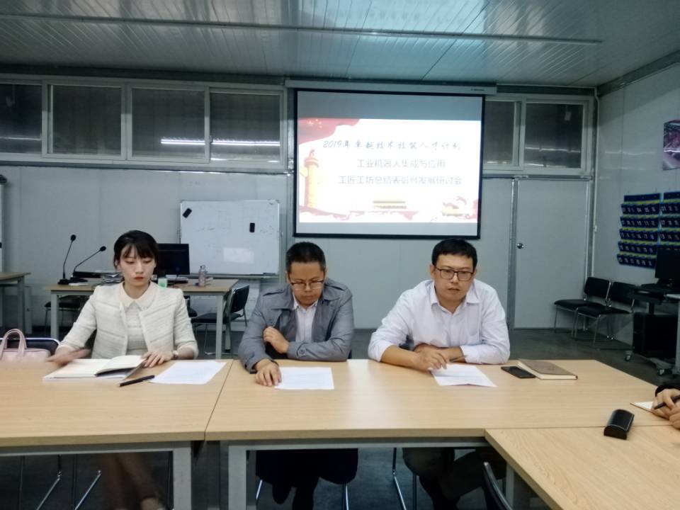 2020年9月24日下午4:00,智能制造与汽车学院工业机器人集成与应用工匠工坊团队成员在机电工程中心A109室召开了关于工坊前期工作的总结表彰暨发展研讨会。参加本次研讨会的有项目主研人员张伟、王姗、聂振华、乌洪杰四位教师以及工坊学员。会议由学员蔡东宏主持。