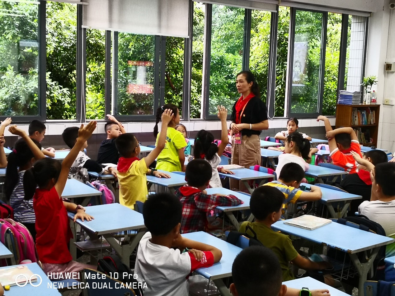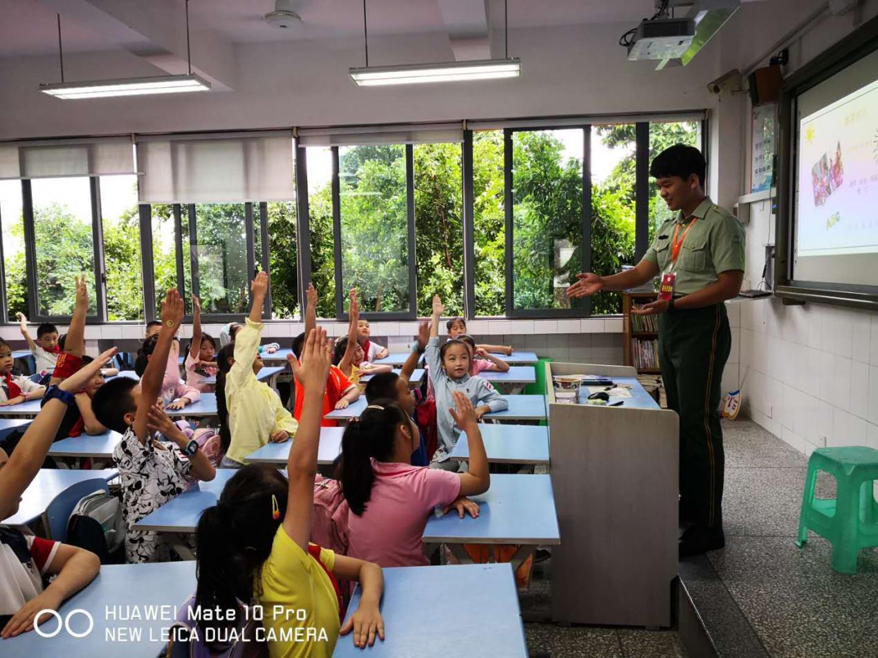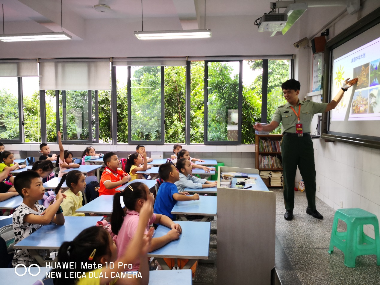 随后,通信工程学院党总支党员流动服务站的陈勇同学以退役军官的身份,给孩子们分享了他在部队的所见所闻、2020年抗疫故事以及今年暑假的抗洪抢险经历。孩子们听得津津有味,对解放军叔叔肃然起敬,听到精彩处多次情不自禁地鼓掌叫好。有的孩子当场举手表示,长大后也要成为一名保家卫国的战士。孩子们告诉老师:通过这次党课,他们更加懂得了有国才有家,更加热爱党和国家。同学们能够幸福地生活、舒适地学习、开心地玩耍,是无数英雄的负重前行换来的岁月静好。大家都决心要更加努力学习,不辜负党和祖国的期望。