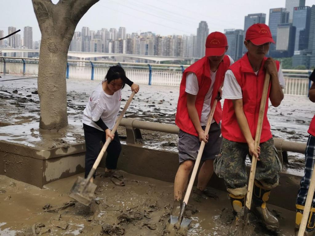 八月中下旬,2020年长江5号洪水、嘉陵江2号洪水过境重庆,汛情罕见、灾情严重,作为生长在长江边的地道重庆人,同时也是学校志愿者服务队队员的人工智能与大数据学院移动应用1802班的江豪同学,总觉得应该为抗洪工作、恢复家园做点什么,于是他和同班同学王寅峰决定一起报名志愿者。