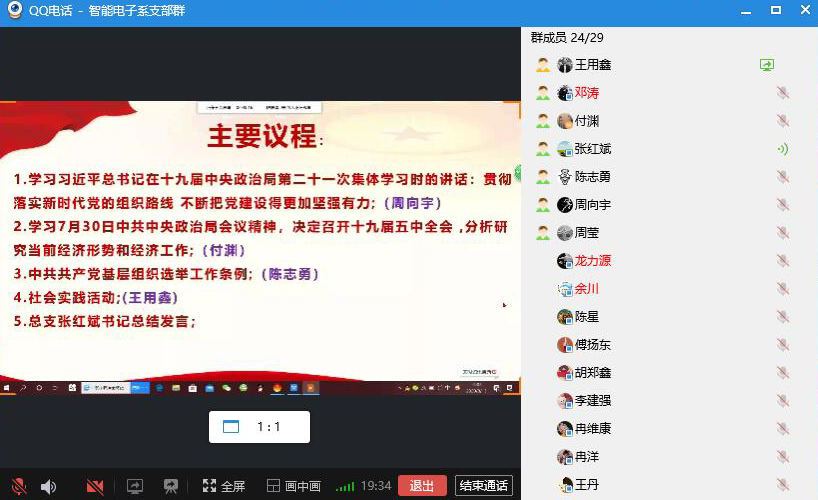 8月13日,智能电子系党支部通过支部群远程在线开展了八月份主题党日学习。支部书记王用鑫主持,全体党员除4人请假外佩戴党员徽章参加学习。王用鑫同志介绍了本次学习的主要内容及学习方式。