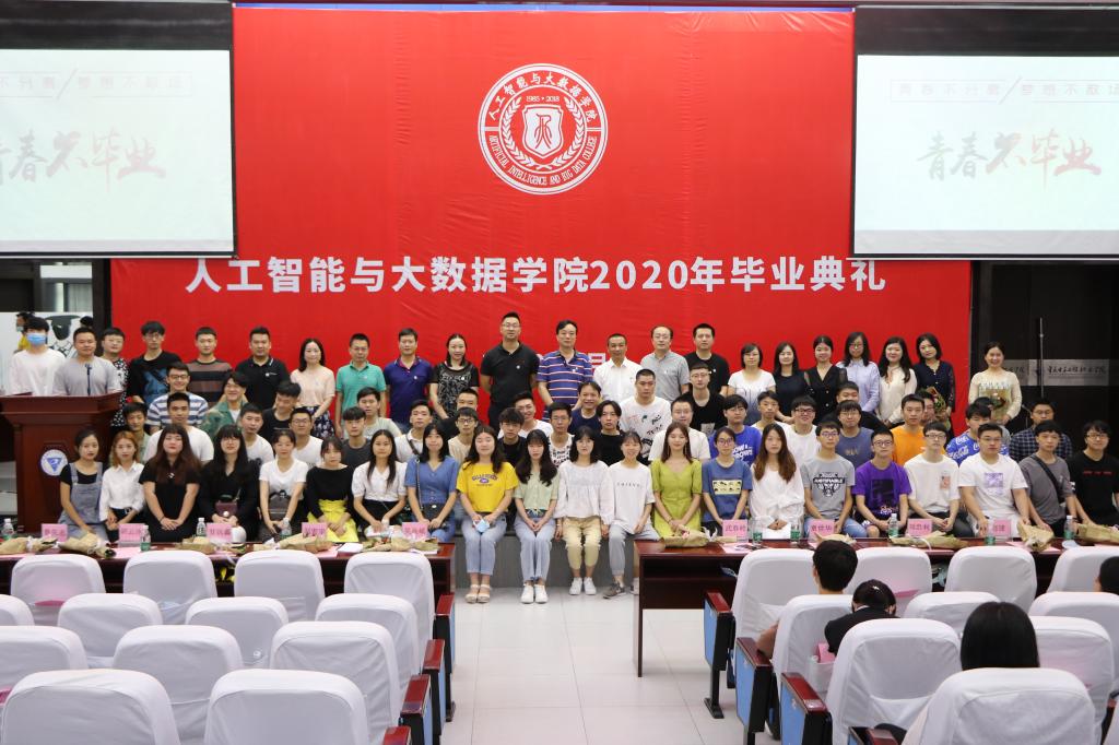 6月28日上午,人工智能与大数据师生代表相聚博远厅,为即将离校的1267名2020届毕业生举行隆重的毕业典礼,共同见证2020届毕业生学有所成、顺利毕业。学院党总支书记吴焱岷、院长武春岭、党总支副书记刘宏宇、副院长童世华、各科室负责人、各系主任、毕业生辅导员及2020届毕业生代表应邀参加毕业典礼。