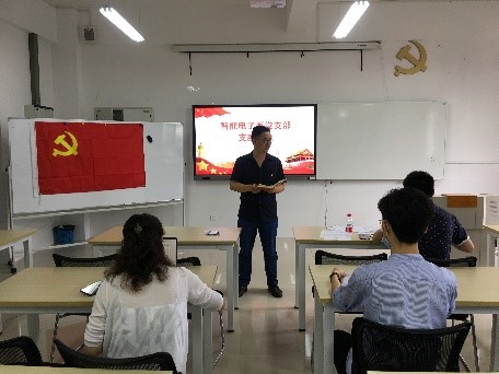 6月15日智能电子系党支部在12504召开党员大会,就党员发展及预备党员转正事宜进行讨论,支部书记王用鑫主持会议。