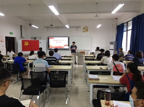 最后学院总支书记张红斌对预备党员和按期转正的党员同志表示祝贺,为组织吸收了新的力量感到欣慰。张书记希望他们坚定信念,以党员标准严格要求自己。对即将踏入正式工作岗位的学生党员提出了爱党、爱国、爱校的要求,并祝愿各位同志在新的环境、新的岗位发光发热,做好党员榜样。