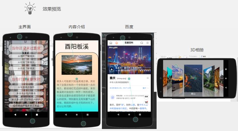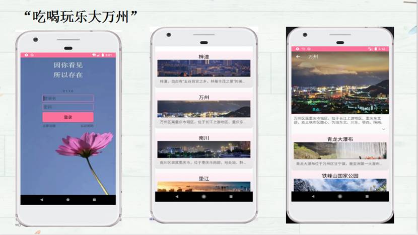 《移动物联网技术应用》课程结合当前社会经济热点难题,启发物联网专业学生进行创新项目设计,基于学习的Android设计开发知识,分组协作完成主题为“‘渝’你抗疫,走进美丽家乡”的项目(产品)设计,为家乡复工复产尽自己的绵薄之力,践行新时代青年大学生责任与担当。
