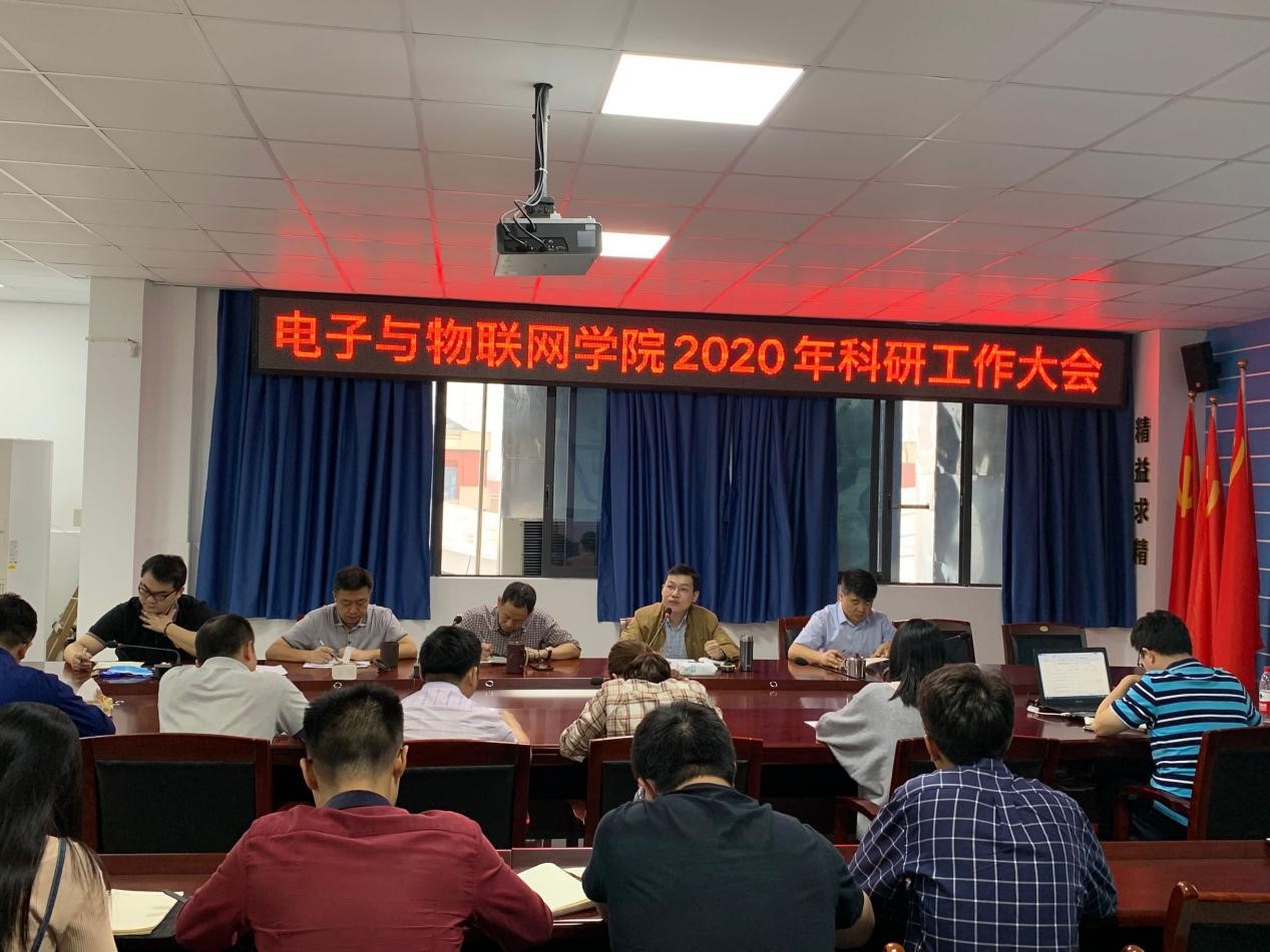 6月2日上午9点,电子与物联网学院组织召开2020年科研工作会议,邀请科研与社会服务处处长许磊同志传达学校科研工作会议精神,解读相关政策。学院党总支书记张红斌、院长陈良、党总支副书记毛弋、副院长夏西泉、科室负责人、系部主任、专业主任及科研骨干教师等共25人参会。