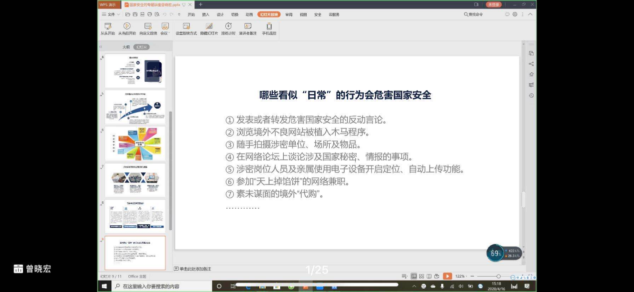 今年4月15日是第5个“全民国家安全教育日”,为进一步贯彻总体国家安全观,切实提升广大师生员工的国家安全意识,结合新冠肺炎疫情防控的形势任务和我校实际,通信工程学院开展了线上的专题学习、专题培训、主题班会、知识测试等一系列活动,收到良好效果。通过此次活动,推动了总体国家安全观和国家安全工作的决策部署入脑入心,提升了师生员工安全风险预警意识和底线思维。