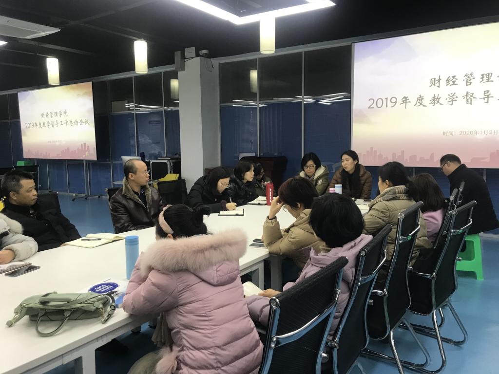 为深化推进学院内部质量保证体系建设,1月2日下午,财经管理学院在北校区10402会议室召开2019年度教学督导工作总结会议。会议由教学副院长汪启航主持,院长黄志平、教务科长王月和本学期全体教学督导成员出席。