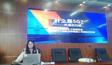 在师生候赛的学术厅中,移动通信技术党支部、通运与通工党支部的谢宗霖老师、张慧敏老师、赵阔老师和左琳立老师为参赛学生和家长带来了一场别开生面的5G科普课堂。