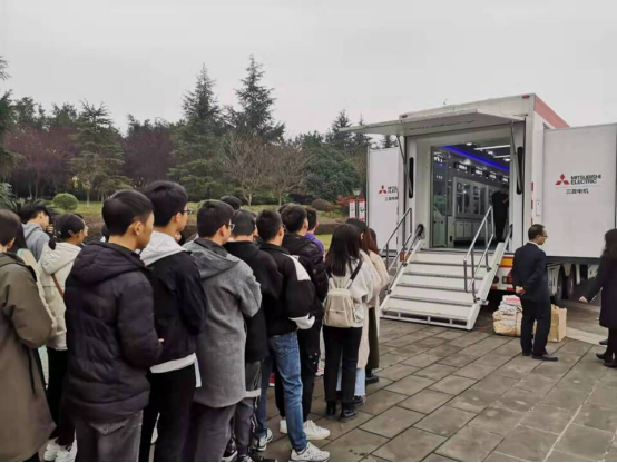 2019年11月22日,世界500强企业三菱电机集团的“移动智能工厂”--自动化展车开进我校学子广场,以“领先科技、智能控制、绿色未来”为主题的“三菱电机自动化创新技术2019巡展”在我校拉开帷幕。