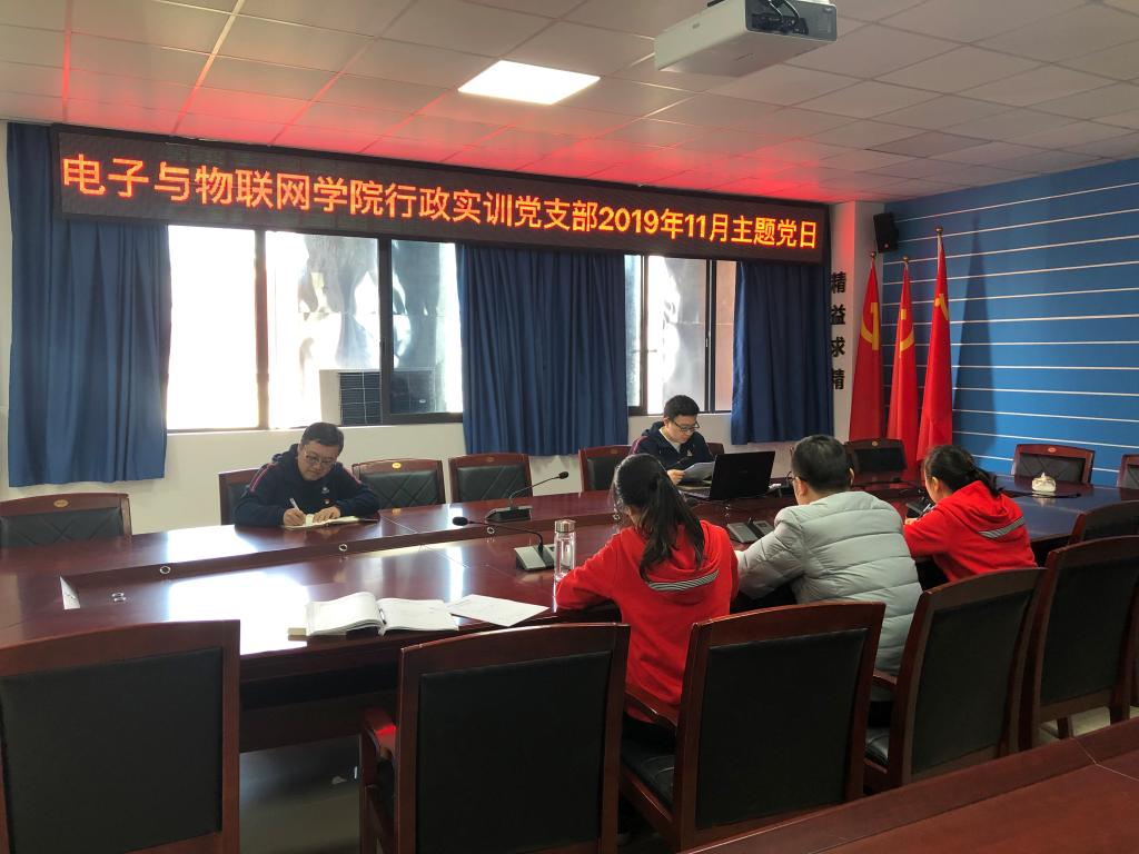 11月14日下午14:30,电子与物联网学院党总支行政实训党支部在南校区12507A会议室召开主题为“对照党章党规找差距,检视反思突出问题”的主题党日活动。本次主题党日活动由廖金权同志主持,共6名党员参会。