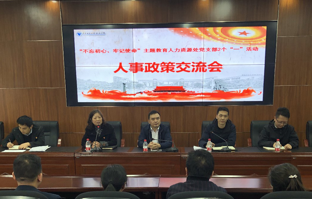 聂强同志在会上强调,要扎实开展“不忘初心、牢记使命”主题教育,通过和老师们的沟通和交流,进一步了解学院、教职工的需求,提升人力资源处的服务水平和能力,希望大家共同努力,将工作做好做细,更好地服务学校“双高”建设。