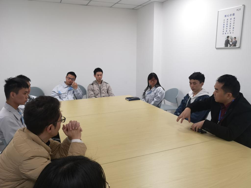 2019年11月13日上午,由电子与物联网学院党总支副书记毛弋带队,与毕业班辅导员一起前往校企合作的京东方科技有限公司进行走访。