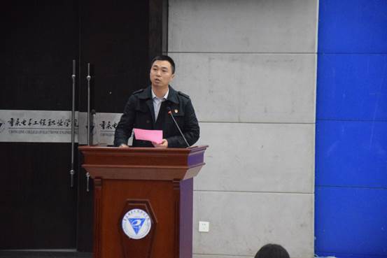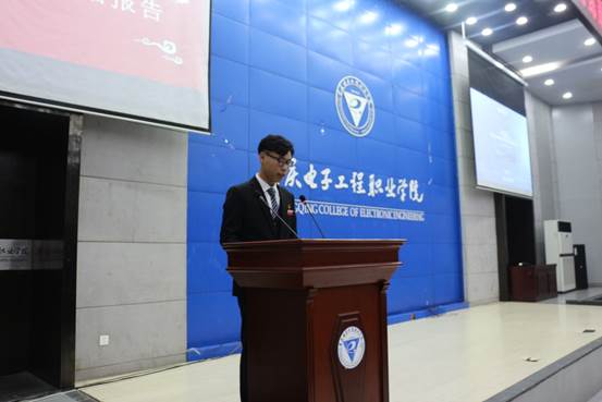 紧接着由通信工程学院第七届团总支·学生会主席文鸯代表我院第七届团总支·学生会及第一届星火志愿服务支队全体干部作工作报告。他在工作报告中指出,我院团学工作的开展和取得的各项成绩,离不开学院领导与老师们的正确领导和关心支持,更离不开学生会每一位成员的不懈努力和辛勤付出。并希望新一届的团学干部能够勇担责任,勇于创新!