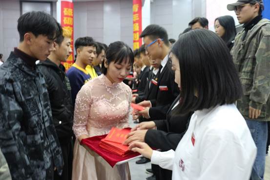 通信工程学院第七届团总支·学生会干部为通信工程学院第八届团总支·学生会干部佩戴胸牌