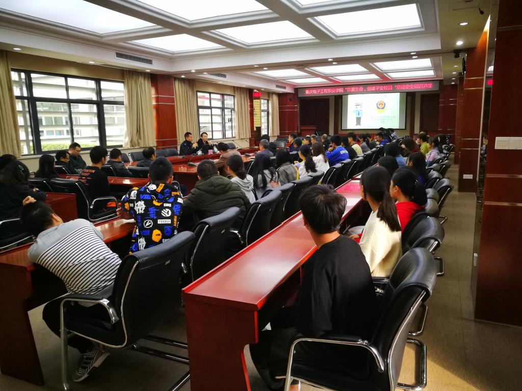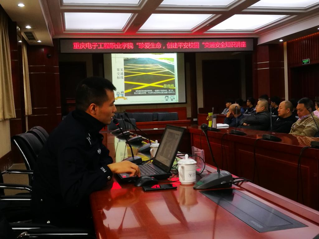 2019年11月4日,党政办公室邀请沙坪坝区公安分局交巡警支队谭杰警官到我校开展“珍爱生命,创建平安校园”交通安全知识讲座。党政办公室、安全管理处管理人员及学生代表参加了讲座。