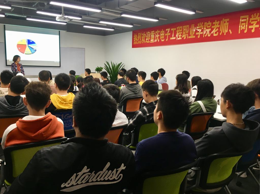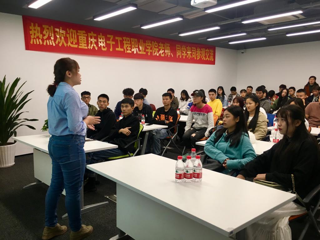 同学们参观企业的营运现状,了解行业一线工作模式。随后的分享会上,招聘经理莫国春、培训讲师张敏等资深员工分别就“电子产品营销与服务行业现状、发展趋势、就业前景”、“电子产品营销售前、售中及售后探秘”等板块与同学们进行了交流分享。