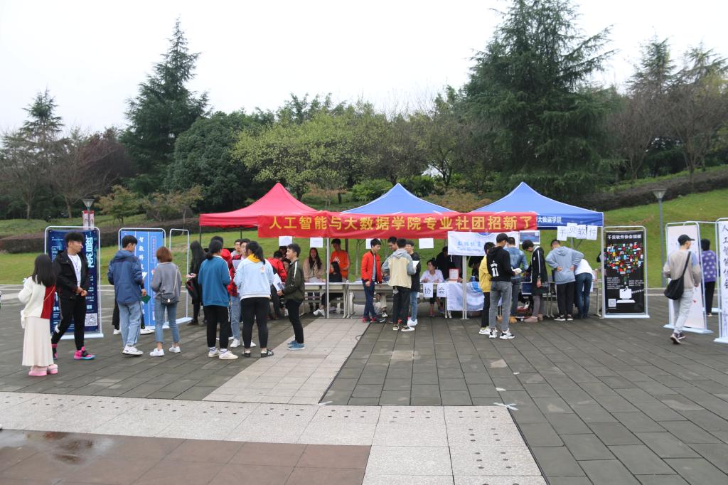 2019年10月23日,人工智能与大数据学院近10个特色专业协会在学子广场进行新学期招新活动。为更好吸引新生加入、发展社团,各协会社团均展示了极具特色的活动。招新现场热闹非凡,在校园内形成的风景线。