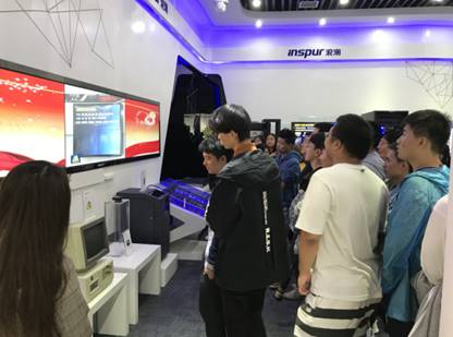 最后,同学们来到了浪潮(重庆)云计算中心的主展厅,袁一群工程师为同学们讲解了浪潮集团的发展历史、主营业务以及获得的荣誉等,同学们饶有兴趣地听取讲解,并结合各自实际情况与工程师进行互动交流。