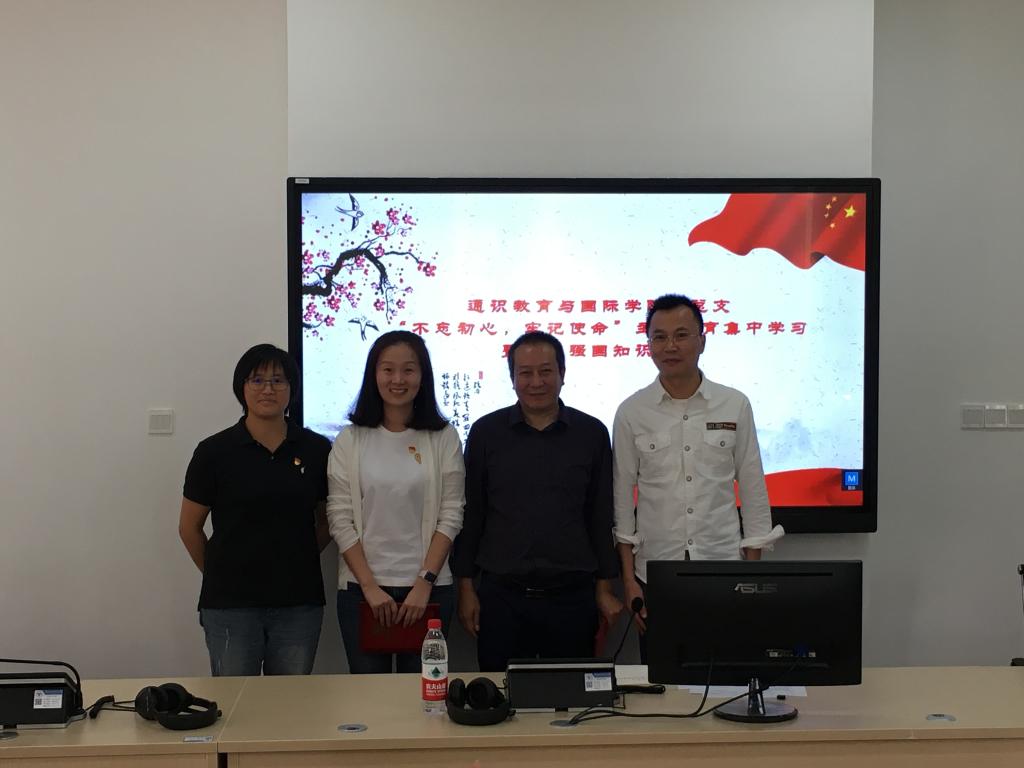 2019年9月27日上午,通识教育与国际学院党总支在2307教室开展了“不忘初心、牢记使命”主题教育集中学习暨“学习强国”知识竞赛。集中学习由学院党总支书记冉槐主持,学院全体党员教职工参加了集中学习和研讨发言,学校“不忘初心、牢记使命”领导小组办公室成员组织统战部张凤玲同志、协调指导第五小组张益萍同志到会指导。重庆城市管理职业学院继续教育学院书记院长陈娜同志、四川美术学院思政课教师毛大海博士和指导组张凤玲、张益萍同志担任“学习强国”知识竞赛评委。