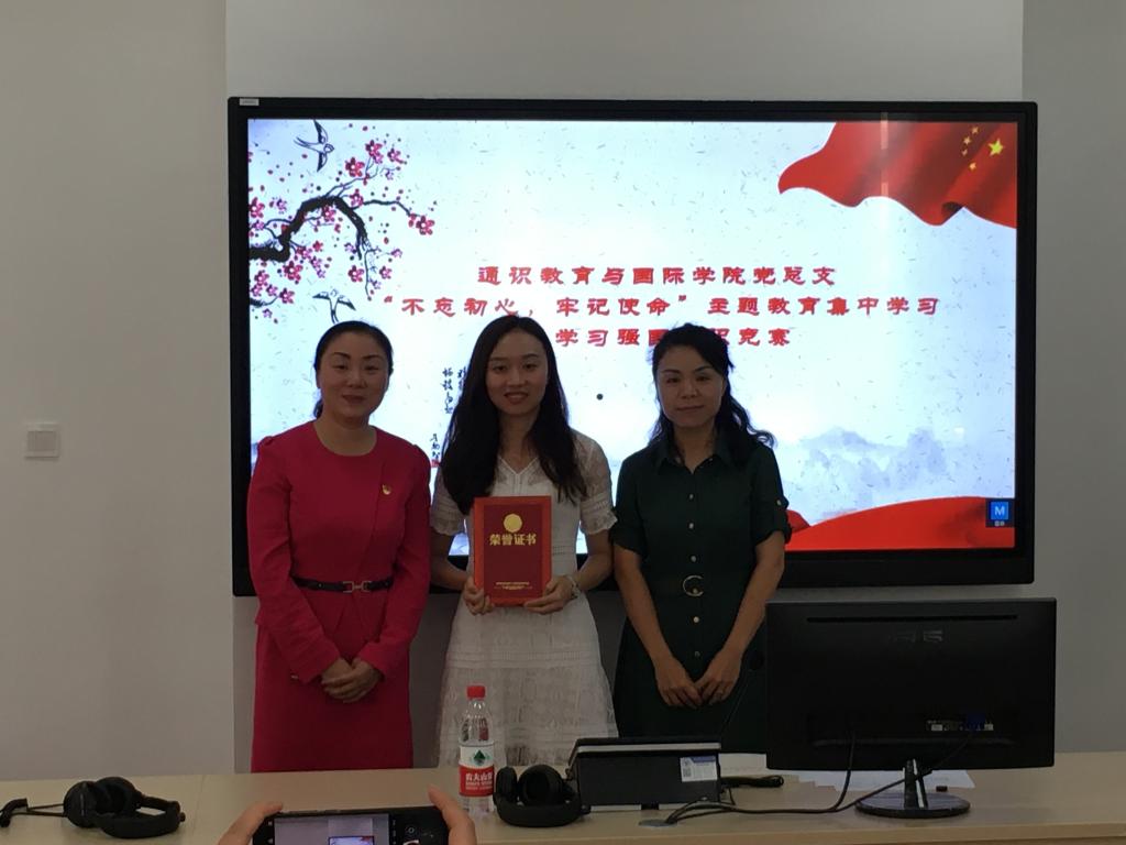 熊妍茜老师获得一等奖,并将代表通识教育与国际学院参与全校教职工知识竞赛。