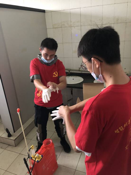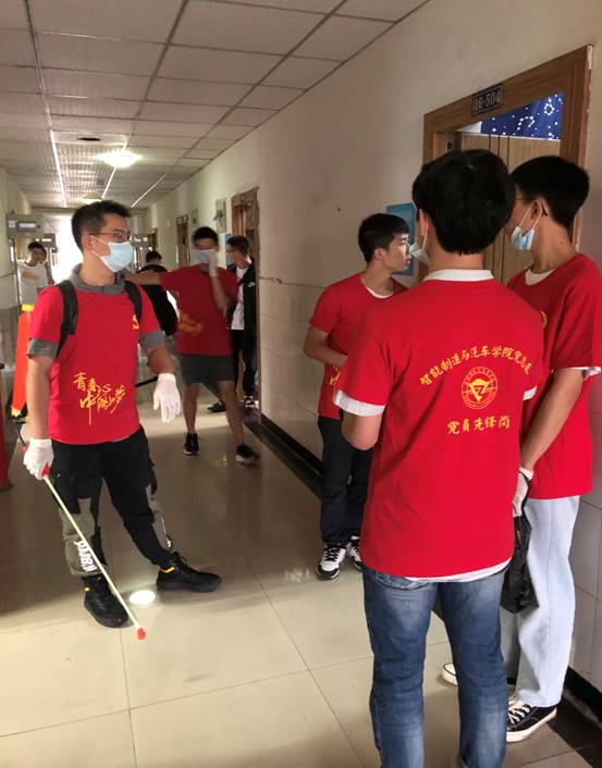 为了充分发挥学生党员队伍的模范带头作用,维护学生宿舍的安全稳定,创建一个健康和谐的寝室居住环境,9月19日中午,我院学生党员们在学管科长白玥婕和辅导员赵宝鹏的带领下,深入每个宿舍进行卫生消毒和安全隐患检查。