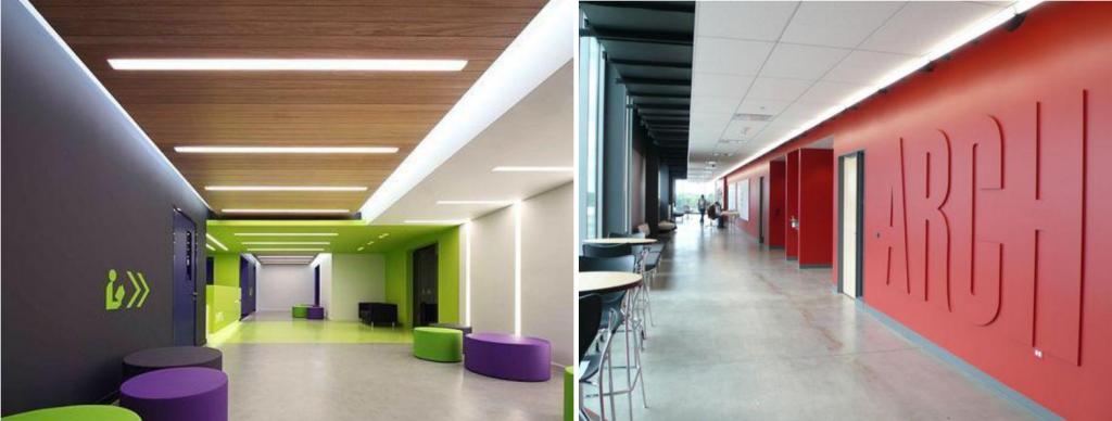 学院联合专业设计机构,在全新VI系统基础上,规划设计学院教学、实训、办公和社交场景,形成风格鲜明独特的校园环境,将办学理念、学院特色融合于学校整体校园规划中,不断丰富财经管理学院内涵,形成文化特色和品牌。