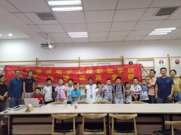 为了全面提高学生的科学素质、科技创新精神,很好的实施素质教育;让学生在科技活动中学会探究,学会合作,敢于创新。7月7日,中共重庆电子工程职业学院通工与通运党支部联合重庆师范大学中小学科技教研中心前往沙坪坝区渝碚路街道“重庆市沙坪坝区青少年人工智能科普实践基地”面向沙坪坝小学、沙坪坝区第一实验小学、树人小学、重庆大学附属小学、汉渝路小学、鲤鱼池小学、烈士墓小学、高滩岩小学等小学三到五年级的学生开展科普公益教育活动。