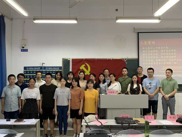 2019年6月27日中午13:30信息服务系党支部在7-218教室召开了接收预备党员大会。大会由党支部书记刘睿强同志主持,支部全体党员、预备党员、入党积极分子、学管科张力科长、班长、团支书等40余名同志参加。