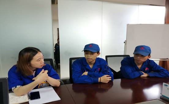 为更好地了解和掌握我院2017级汽车制造与装配技术专业学生岗位认知实习情况,进一步促进和加强校企合作,6月26日下午,我院实习指导教师王勇、张俊峰、陈卫东与辅导员李春华,前往重庆渝江压铸有限公司看望实习学生。