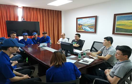 在实习企业的积极配合下,王勇一行与学生进行了面对面的交流与座谈。学生首先向指导老师与企业负责人介绍了自己的实习岗位、实习情况,分享了自己的实习收获与心得体会,同时就实习过程中的问题向企业负责人和指导老师请教。看到实习同学们的状态,在听取了学生们的情况汇报后,几位老师向同学们表示肯定并提出了几点建议:一是要珍惜学院和企业提供的这次实习机会,认真向企业指导老师学习,不断提升自己的实践能力和专业水平;二是要在实习实践过程中明确自我定位,找准个人发展方向,进一步明晰职业生涯规划,努力找到真正适合自己的发展之路;三是要脚踏实地,主动思考和探索工作,努力将熟悉了的工作做到极致;四是要注意生产安全、生命安全与财产安全,学会调节自己的情绪与状态,时刻让自己保持积极愉悦的心态。接着,企业人力资源部周老师谈到,学院能够为学生积极搭建这样的实习平台实属难得,这离不开学院领导和老师的辛劳付出,希望同学们能够珍惜机会,在岗位上努力将自己锻炼成为“多能”员工。最后,周老师与学院老师一道为同学们答疑解惑,就同学们提出的问题进行了耐心的解答。