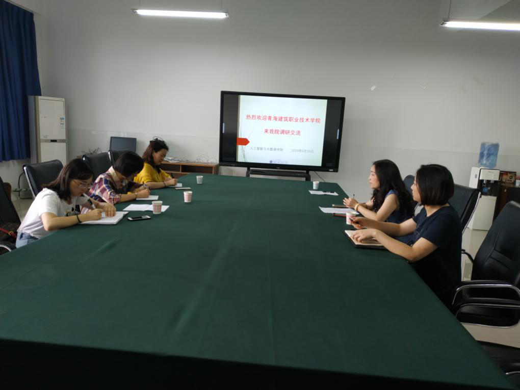 2019年6月19日下午,青海建筑职业学院信息技术系副主任李明燕一行三人来到我校人工智能与大数据学院,就云计算和大数据专业开办情况、招生就业情况、开云电子平台_开云(中国)及教学工作进行调研。人工智能与大数据学院党政科长甘沅鑫、云计算与大数据系副主任付雯、云计算专业教师陈杏环、人工智能系教师张浩淼出席了交流会。