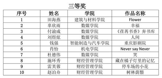 为贯彻落实教育部等部委印发的《高等学校学生心理健康教育指导纲要》《关于加强心理健康服务的指导意见》《教育部思想政治工作司关于举办“‘5·25’大学生心理健康教育月”活动的通知》等文件精神,更好地宣传、普及心理健康知识,拓展心理健康教育途径,引导大学生形成自尊自信、理性平和、积极向上的心态,帮助大学生珍爱生活、尊重生命、记录生活的美好与感动,促进他们身心和谐、健康可持续发展,我校党委学生工作部大学生心理健康教育与咨询中心与数字媒体学院在“心理健康教育宣传月”联合举办了大学生心理微摄影大赛。比赛得到了相关部门和各学院的大力支持,共征集到来自7个学院80多名参赛者提交的一百余份作品。经过评委的认真审核和评选,共选出一等奖5名、二等奖8名和三等奖10名。本次活动通过学生手中的镜头展现出生活的多彩与美好,对于提高大学生心理素质,让广大学生学会多角度的观察人生,体验自己存在的价值,认识自我,悦纳自我,为将来能够更好地融入社会打下坚实的基础,在丰富了校园文化的同时,为营造更加健康向上、积极主动的和谐校园做出了积极贡献。