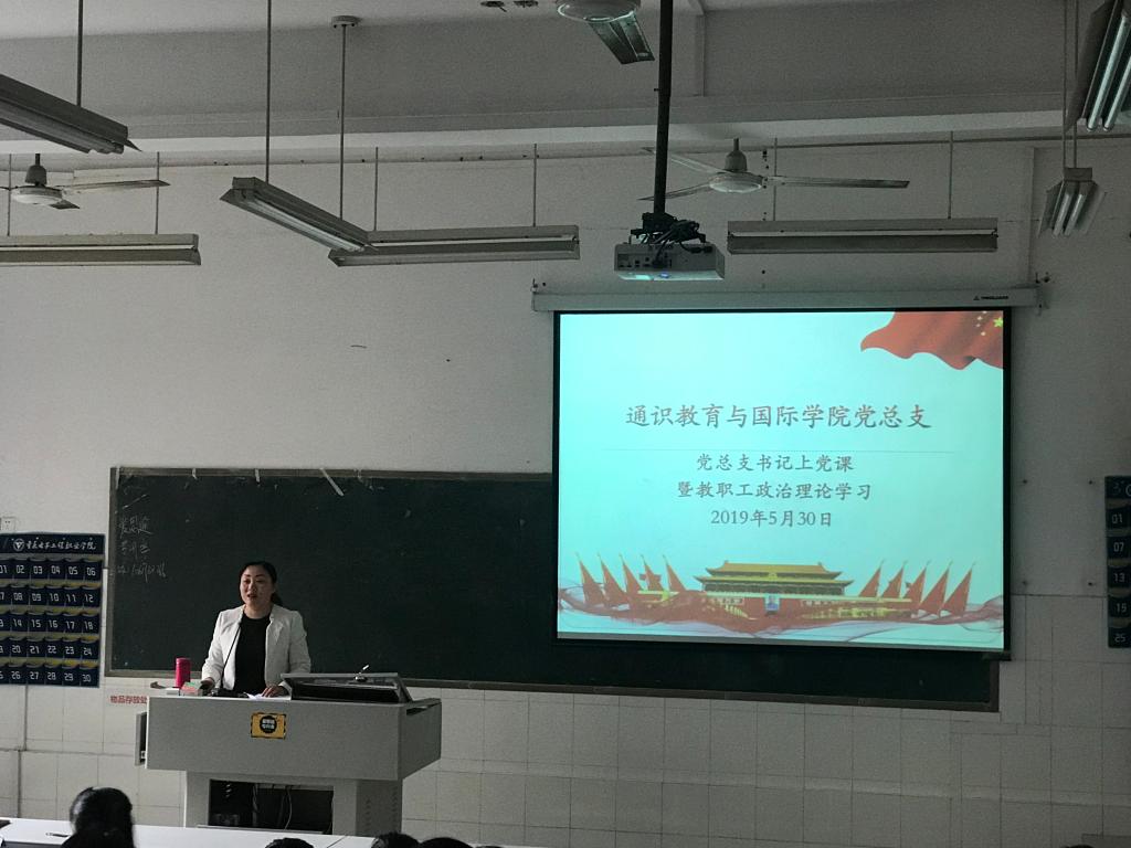 2019年5月30日下午,通识教育与国际学院在7-107开展了党总支书记上党课和全体教职工政治理论学习。学院党总支书记冉槐以《坚定理想信念 牢记初心使命 做一名优秀的人民教师》为主题,面向全体党员和教职工开展了辅导学习。