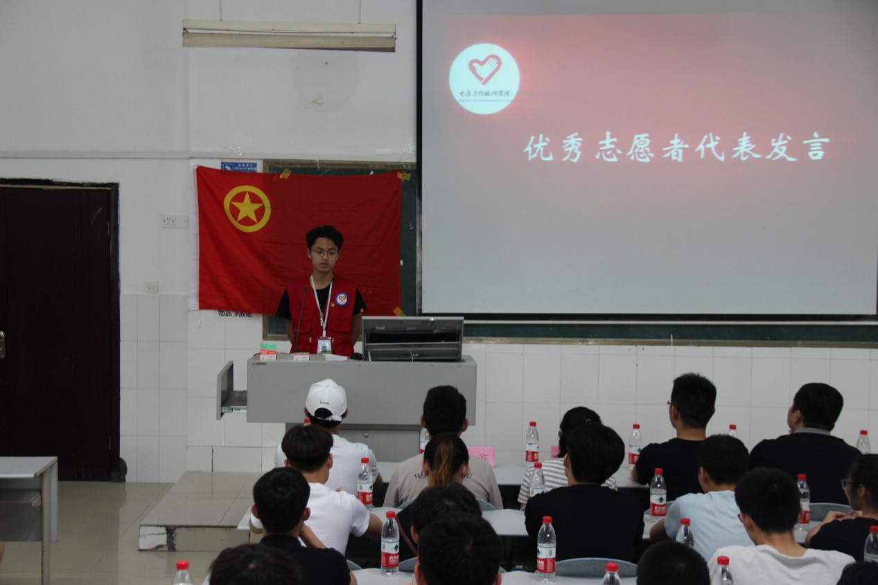 接下来由优秀志愿者代表向俊茁发言分享自己的心得体会。