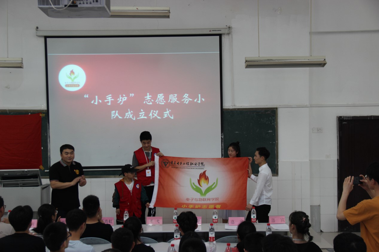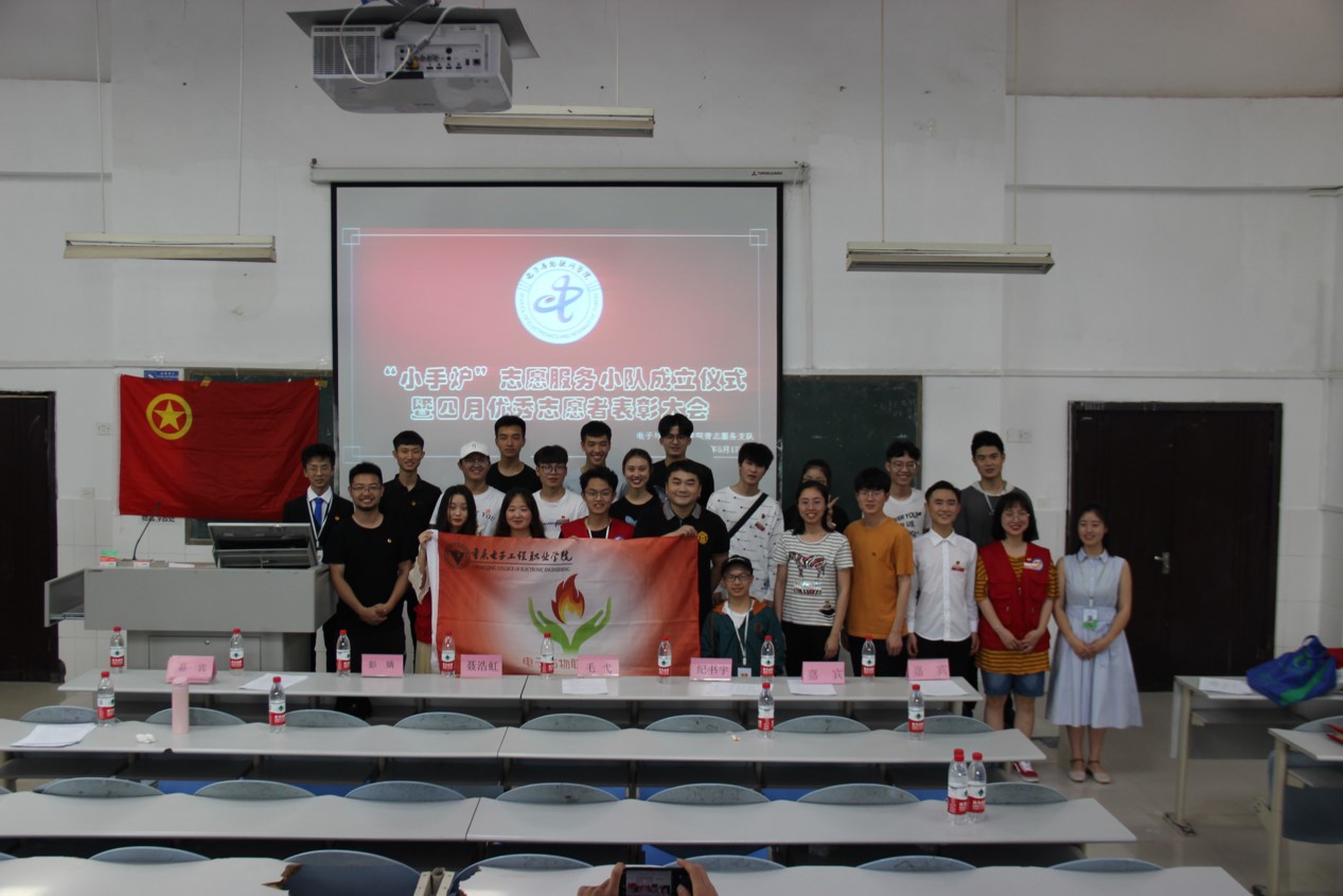 重庆电子工程职业学院电子与物联网学院青年志愿服务支队"小手炉"志愿服务小队成立仪式暨四月优秀志愿者表彰大会于2019年5月17日中午12点20正式开始。