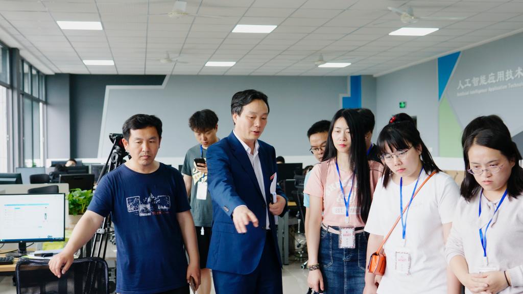 2019年5月16日,“2019年全国主流网络媒体重庆高校行”大型融媒体采访活动在我校继续进行。来自人民网、新华网、光明网、中国青年网等国内30余家中央及省级重点新闻门户网站采访团来到人工智能与大数据学院,参观走访了“大数据可视化创新中心”“人工智能应用技术创新中心”等平台,以第一视角直观感受学院卓越开云电子平台_开云(中国)、人工智能与大数据技术创新等情况。
