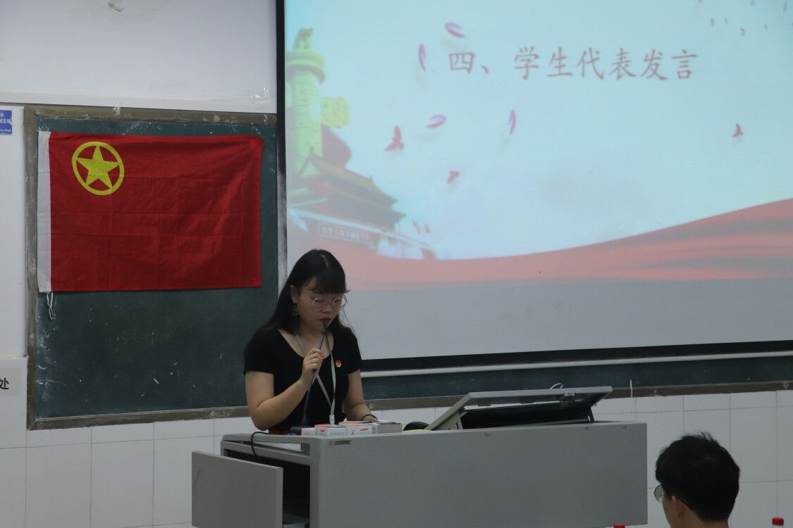 接下来由外联部干事熊雨琴同学代表预备干部发言:我们参加此次“鸿雁”团学干部孵化器的活动主要目的是加强学生的自我建设,锻炼预备干部的能力。同时我们也感谢电子与物联网学院的学长学姐,因为有他们的帮助,我们才可以走到今天。