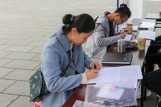 同学们利用课余时间来到现场答题。因为大家积极地关注学习学院微信公众号发布的法治相关知识,所以都能够很快的答完题目并且正确率非常高。可见大家对法治相关知识已经有了一定的了解。