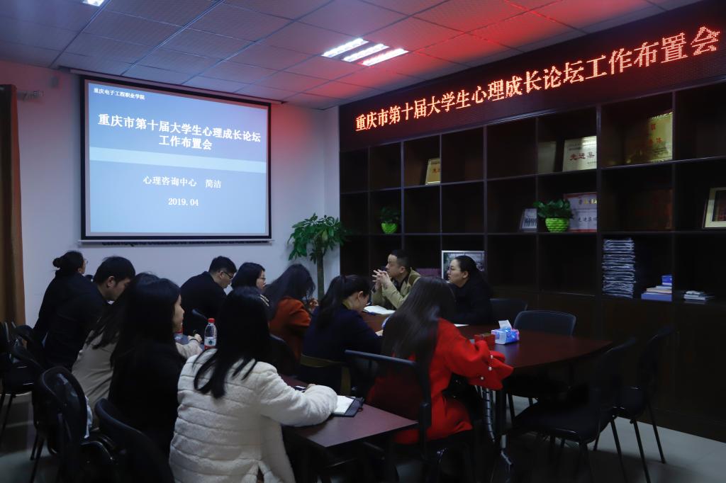 为认真贯彻落实国家22部委《关于加强心理健康服务的指导意见》,积极参加重庆市社会心理学会主办的重庆市第十届大学生心理成长论坛比赛,2019年4月2日上午,心理健康教育与咨询中心简洁副教授主持召开了大学生心理成长论坛工作布置会。学生发展中心、学生资助中心李明蔚主任、中心秦韬老师及各二级学院心理联络员、兼职心理咨询师共计13余人参加了此次会议。