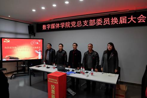 大会在庄严的国歌声中拉开帷幕。经过清点,大会应到党员64人,实到党员57人,因公请假7人,列席预备党员25人,符合规定人数。受大会委托,钟佐彬同志代表学院党总支宣读了校党委组织部关于同意换届选举的批复。随后大会酝酿通过了候选人预备人选名单,同意彭海深、刘晓东、何能、钟佐彬、谢永、钟翼、朱文昊、欧其语和杜鹤淦等九名同志作为数字媒体学院党总支部委员会委员的候选人。彭海深同志宣布监票人就位并当众检查了票箱。随后计票人发放选票57张并撕毁了剩余选票。经无记名投票,大会选举彭海深、刘晓东、何能、钟佐彬、谢永、钟翼、朱文昊等7人为数字媒体学院党总支部委员会委员。刘晓东同志代表新一届委员会委员致辞,他表示将认真履行职责,努力学习领会习近平新时代中国特色社会主义思想,肩负起学院发展的重担,不辜负全院党员的重托和信任,带领数字媒体学院再创辉煌!