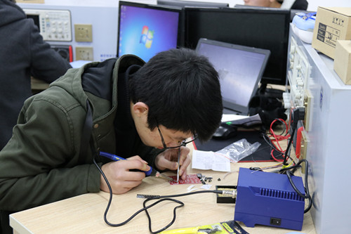 参赛团队遴选主要由夏西泉副院长统筹,教务科和工程中心落实,为使遴选出的团队综合实力最优,学院提前根据大赛情况做好测试选题准备,从焊接部分、电路设计部分以及程序设计部分分别出题,同时,模拟比赛细化评分表,最大限度测试出学生的真实水平。为公平、公正、公开此次遴选,特邀请院外资深专家王静教授、郑卉副教授以及赵阔副教授担任本次赛项遴选的专家评审。