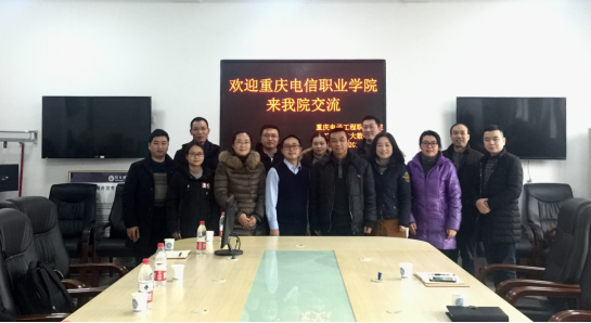 2018年12月28日,重庆电信职业学院大数据与软件学院郑未院长、张鲁燕副院长、罗国春主任、李再友主任、专业教师杨正英、刘军、杨文艺一行来我院调研考察,人工智能与大数据学院吴焱岷书记携部分专业教师付雯、项刚、郑卉、吴明元、李俊翰、王宁忆、肖蜀奉出席了座谈会。