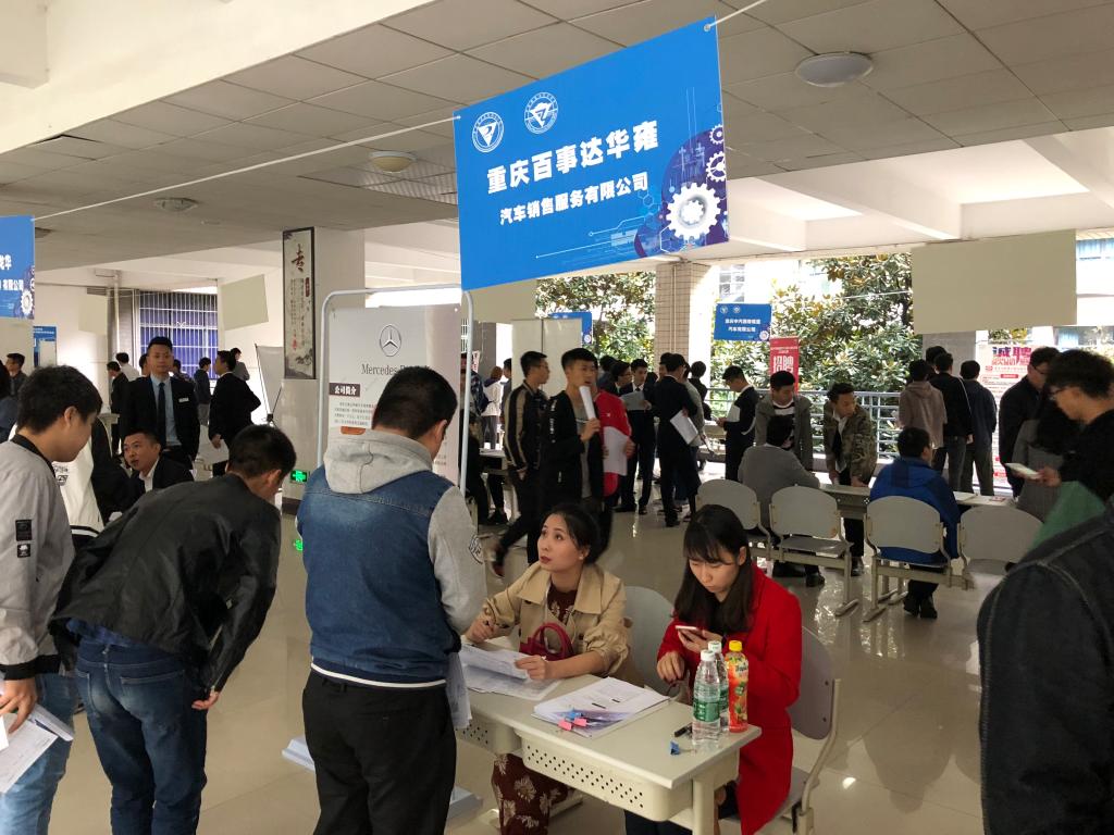 就业是我院一项常抓不懈的重要工作。为办好本次专场双选会,我院多渠道发布双选会预约报名信息,并结合专业协调发展的特点精心组织。最终邀请到了以重庆麦创恩工业设备有限公司、重庆国际复合材料有限公司、重庆仁星汽车服务有限公司、重庆龙华实业(集团)有限公司、时代上汽动力电池有限公司、重庆百事达华雍汽车销售服务有限公司、中国平安渝中分公司等29家企业,其中麦创恩工业、龙华实业等多家企业已经是连续几年来我院挑选优秀人才。此次双选会涉及储备干部、行政、内勤、销售、、服务、财务人员、技术工程师等岗位,合计600余就业机会,为我院2019届毕业生提供多样化的求职选择。